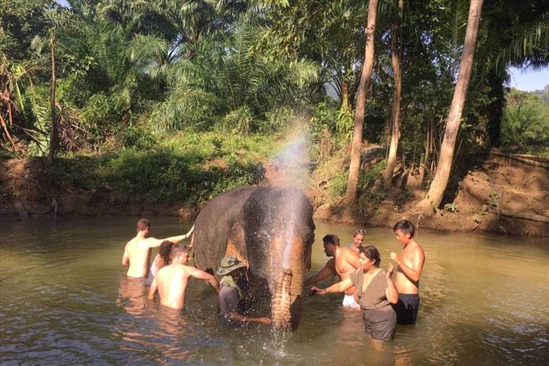 Arriving at the river, experience the delights of washing and elephant-splash around and wash it down. This will be muddy good time!